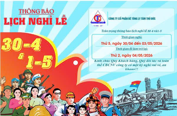 THÔNG BÁO LỊCH NGHỈ LỄ 30/4, 01/05 VÀ GIỖ TỔ HÙNG VƯƠNG NĂM 2026